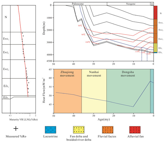 6]. In a study of the geothermal history and homogenization temperatures of fluid inclusions in the area, Wang et al. (2016) proposed that the oblique transition zone has experienced only one episode of hydrocarbon charging, around the Middle Miocene to Pliocene, which corresponds to the main stage of the Dongsha Movement [