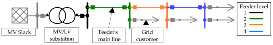 | 3 | Grid-specific | Double | MV/LV substation and each feeder’s main line | Feeder level 1 and 2 |