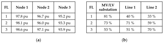 - Thermal overload of the transformer(s) at the MV/LV substation: The developed tool initially examines whether the parallel installation of an additional transformer with the same nominal power as the existing one(s) is sufficient to prevent thermal overload. If not or the maximum number of parallel transformers is already reached (Table 3), existing transformers at the MV/LV substation are exchanged with new ones, providing sufficient nominal power.