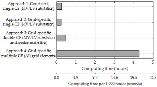 | CF-Variation in the Analyzed Grids | No. of Various CFs Applied per Grid | Grid Element as Basis of CF-Determination | Simulated Feeder Levels | |
