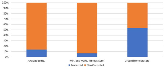 The following supporting information can be downloaded at: https://www.mdpi.com/article/10.3390/en15041393/s1. Table S1. Information about all artificial neural networks models for average temperature. Table S2. Information about all artificial neural networks models for average temperature with 1 day ago. Table S3. Information about all artificial neural networks models for average temperature with 2 days ago. Table S4. Information about all artificial neural networks models for min/max temperature. Table S5. Information about all artificial neural networks models for min/max temperature with 1 day ago. Table S6. Information about all artificial neural networks models for min./max. temperature with 2 days ago. Table S7. Information about all artificial neural networks models at a ground-level temperature. Table S8. Information about all artificial neural networks models at a ground-level temperature with 1 day backdate. Table S9. Information about all artificial neural networks models at a ground-level temperature with 2 days ago. Figure S1. Topology of the best neural network MLP 26-13-1.