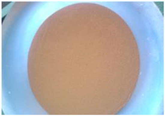 Fly ash resulting from sewage sludge thermal treatment is a dry material with a characteristic red-pink color (Figure 2), which distinguishes it from power industry ash, the color of which oscillates in the gray scale.