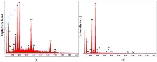 EDS analysis of fly ash (Figure 3): (a) in point 1; (b) in point 2.