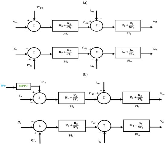 The RSC and GSC converters, along with their respective proportional integral (PI) controllers, are depicted in