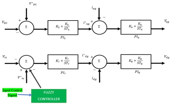Figure 6 shows the location of the fuzzy controller, which was applied to the input of the stator voltage control loop of the GSC.