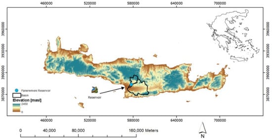 Hydropower is a clean, renewable source of energy that significantly contributes to the reduction of greenhouse gas emissions; however, global warming is expected to have an impact on water availability and thus on hydropower management. Hydropower generation in the Mediterranean region has mainly been developed on the mainland due to the hydropower potential provided by large rivers and lakes. At the same time, several Mediterranean islands are not connected to the main electricity grid (e.g., []), meaning that independent local grids cater for their power requirements, mainly using imported fossil fuels, contributing to global warming. Seasonal variability in power demand, fuel price volatility, as well as growing tourism development, impose additional complexity []. Over the past couple of decades, the EU has funded the construction of several dams and reservoirs for water supply and irrigation purposes in islands such as Cyprus, Crete, Sicily, Corsica and Majorca. In some cases, the exploitation of the hydroelectric potential, respecting the islands’ water needs and a multipurpose use of the reservoirs, has been a topic of investigation as it could contribute to a sustainable energy system and support the implementation of the revised Renewable Energy Directive (2018/2001/EU). Spain, Italy and France produce over 20 GW from hydropower, while Greece only produces 3.4 GW [,]. Small hydropower plants can play a major role in improving energy autonomy and contributing to renewable energy and the climate neutrality agenda as hydropower is considered one of the most sustainable and clean energy sources in terms of carbon emissions [,,]. The assessment of the hydropower potential on islands such as Crete would be a very effective tool for local stakeholders allowing them to acquire funding from private and public sectors for hydroelectric power production.