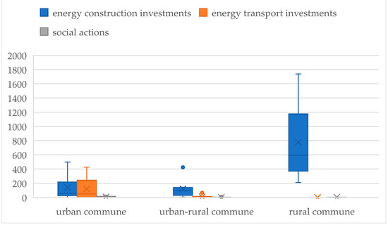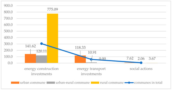 As far as investments in energy innovations are concerned, there is considerable variation between particular types of communes. Smaller communes, in particular rural ones, allocate much greater financial resources per capita than larger communes to the implementation of modern solutions in the field of climate and energy policy implementation. In the case of a smaller social group, it is associated with high unit investment costs; therefore, it is important to obtain funds from external sources. This is because small communes are not able to finance investments the value of which reaches 50% of the annual budget of the local government. The obtained funding allows the project to be implemented and the commune to be recognized as pro-environmental.