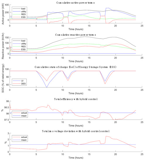 In principle, each user may decide, time by time, which part of his capacity (stored energy, active and reactive power) can be shared with the rest of the E-LAN to improve local performance (e.g., voltage stabilization, loss reduction, power sharing, stress reduction) or to meet system-level requirements (e.g., demand response, power factor at the point of common coupling with utility, transition from on-grid to off-grid operation, fault clearing, etc.). The remaining capacity can be used for private needs, e.g., smoothing of domestic power absorption or trading energy in the market [2,8].