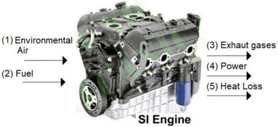 The control volume considered for the energy analysis included the engine (Figure 1). Steady-state conditions were assumed.