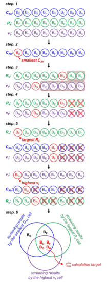 To simply describe the operating principle of the second screening process, eight cells (BA–BH) were arbitrarily selected from Figure 7d, and the cell parameters are listed in Table 1.