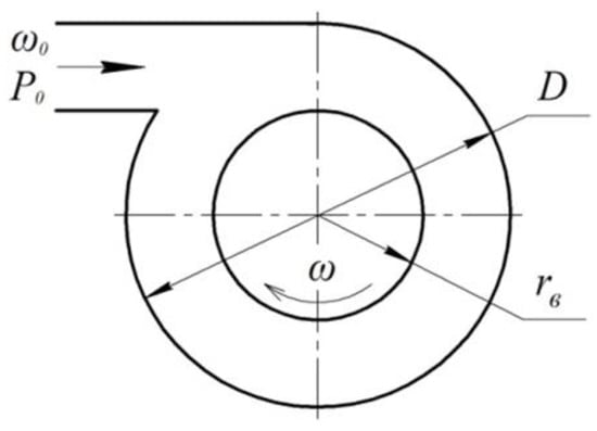 Studies of gas and liquid flows within a vortex tube apparatus are rather complicated as the liquid flow is three-dimensional, high-speed, and turbulent. Therefore, a need arose to develop specific measurement probes and coordinate spacers. Even if the dimensions of measurement tools getting into a liquid flow or a gas flow are minimized, the former develops significant disturbances, and results in the flow rearrangement worsening the operation of the whole vortex facility. The probing technique is the only research approach that makes it possible to determine the qualitative flow pattern with an approximate quantitative estimate. In such a scenario, analytical studies with the use of mathematical models of gas and liquid flows within a vortex tube apparatus become quite important. Moreover, the method of analytical studies is rather topical while determining the structural characteristics of vortex facilities as well as their effect on energy efficiency. The exact solution of the translational−rotational liquid motion is an intractable problem. However, it can be solved while using substantial simplifications. Let us assume the following simplifications. The liquid is moving through the space between two cylinders. The external cylinder (being the vortex heat generator housing) is stationary. The internal cylinder with rв radius is rotating at angular velocity ω. As a result, the vortex translational−rotational movement of a transfer medium arises along the line of the liquid flow (Figure 1).