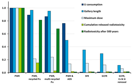 - Poinssot, C.; Bourg, S.; Boullis, B. Improving the nuclear energy sustainability by decreasing its environmental footprint. Guidelines from life cycle assessment simulations. Prog. Nucl. Energy 2016, 92, 234–241. [Google Scholar] [CrossRef]