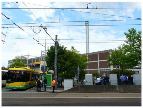 - Weisbach, M.; Schneider, T.; Maune, D.; Fechtner, H.; Spaeth, U.; Wegener, R.; Soter, S.; Schmuelling, B. Intelligent Multi-Vehicle DC/DC Charging Station Powered by a Trolley Bus Catenary Grid. Energies 2021, 14, 8399. [Google Scholar] [CrossRef]