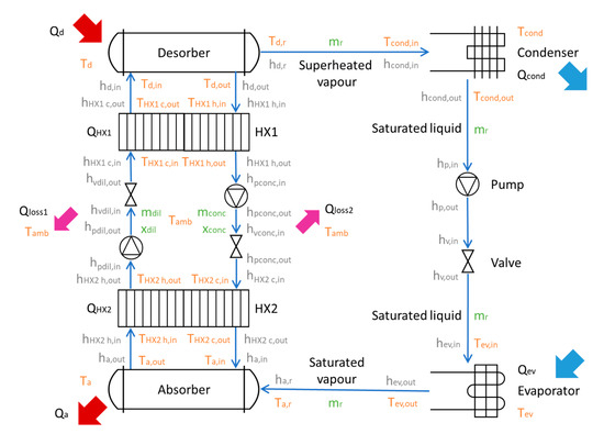 In addition, assuming there are no losses between absorber and evaporator their pressures are equal:
