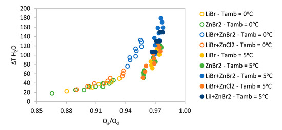 Due to sary sitallization, not all the pairs presented previously are suitable for these temperature conditions and their performance is quite low. The two best performing water-based solutions are Lithium Bromide and Lithium Bromide + Lithium Nitrate as it can be observed in