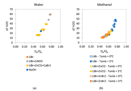 Figure 9a. In the case of methanol, the best performing solution is Lithium Bromide as it can be observed in