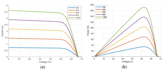 - A photovoltaic power generation system based on a two-diode model is established in the MATLAB/SIMULINK environment, which can be applied to PV power plants of different types and scales only by changing the number of modules in series and parallel.