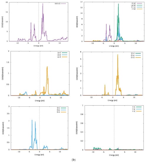 (a) Representation of the total and partial density of states of LaCrO3. (b). Total and partial density of states of LaCrO3H6.