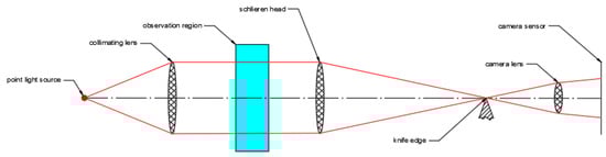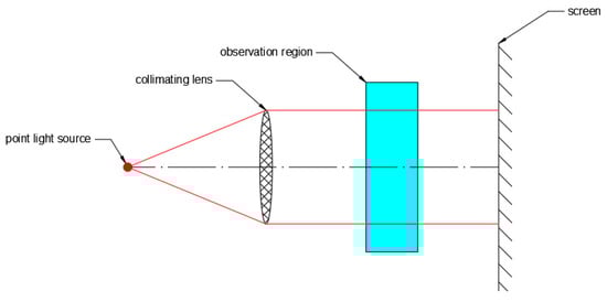 In the laboratory scale, it is necessary to optimize the visualization. With this aim, a point light source with a collimating lens basically can be used that makes the light beams parallel to each other, as shown in Figure 12.