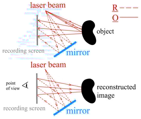 In particular, the setup used to record the holograms is shown in Figure 39, where the laser beam is open in a cylinder of light with a diameter coherent with the ROI, and the hologram is recorded by the optical system “Holography Camera and Lens”.