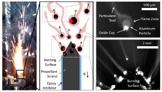- Chen, Y.; Guildenbecher, D.R.; Hoffmeister, K.N.G.; Cooper, M.A.; Stauffacher, H.L.; Oliver, M.S.; Washburn, E.B. Study of aluminum particle combustion in solid propellant plumes using digital in-line holography and imaging pyrometry. Combust. Flame 2017, 182, 225–237. [Google Scholar] [CrossRef]