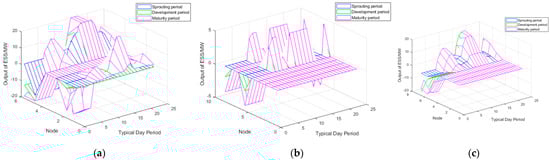 For the distribution network, the new energy unit constraint, ESS constraint and system safety and stability operation constraint are the same as those for the transmission network, so they are not repeated here. Since thermal units are not considered in the distribution network, the start-stop time constraint of thermal units is not involved in the safe and stable operation constraint of the distribution network.