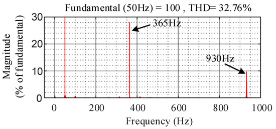 Figure 3 shows the voltage, currents, active power and negative power of TFSCI connected to parallel compensation grid when the HFR occurs. The parameters can be seen in Table A1 in Appendix C. Figure 4 shows the FFT of ia. From Figure 3 and Figure 4, there are two resonance points at 365 Hz and 930 Hz in the system. From Figure 3 it can be found that the resonance at 431 Hz is caused by the zero-sequence components and the resonance at 930 Hz is caused by the positive-sequence and negative-sequence components. Therefore, in order to suppress these resonances, it is necessary to analyze how these resonances occurs.