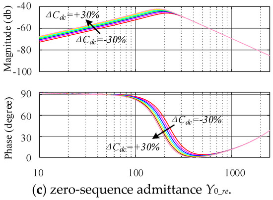 In the actual operation of the inverter, due to the deviation between the actual capacitance value and the nominal capacitance value, it is necessary to analyze the influence of the variation of the DC side capacitance value on the impedance reshaping effect. The following figure shows the impedance reshaping effect with ±30% deviation of the DC side capacitance Cdc. It can be seen from Figure 11 that the capacitance deviation basically hardly affects the impedance reshaping effect.