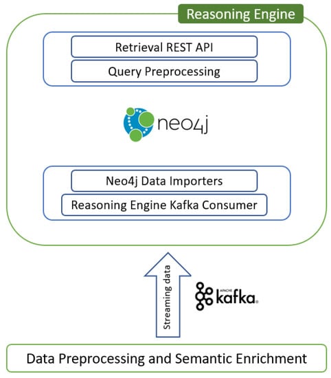 The proposed architecture, Figure 2, consists of five components, namely the Reasoning Engine Kafka consumer, the Neo4j data importers, the Neo4j graph database, the query pre-processing, and the retrieval REST API.
