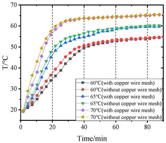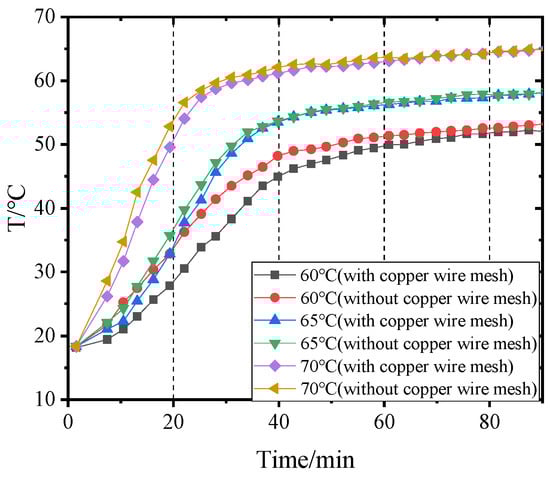 When PCM-2 was used as the heat storage material, three different wire diameters of copper wire mesh were used for the experiments.