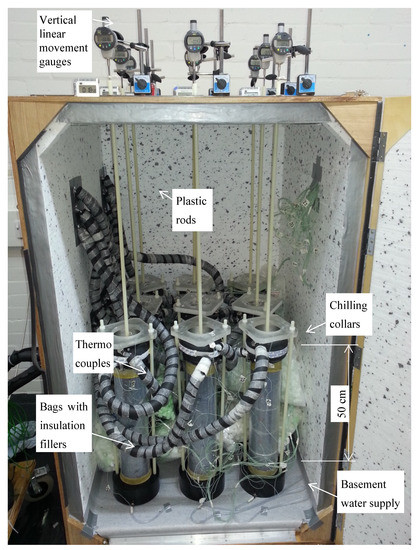 - Ming, F.; Li, D. Experimental and Theoretical Investigations on Frost Heave in Porous Media. Math. Probl. Eng. 2015, 2015, 198986. [Google Scholar] [CrossRef] [Green Version]
