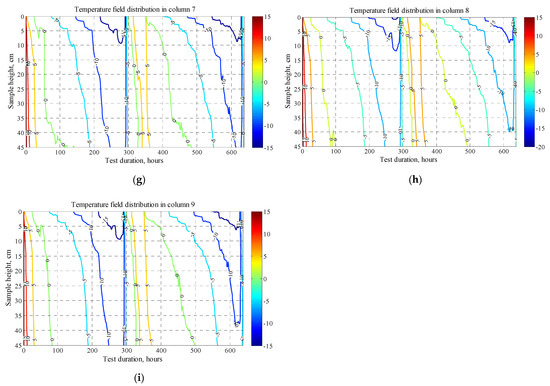 Temperature field distribution in columns #1–#9 within two freeze–thaw cycles: figures (a–i).