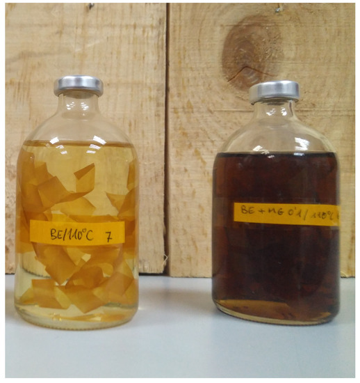 For the aging tests, the vials were kept in a temperature-controlled oven at a temperature of 110 °C for 60 days. The selected test temperature was 110 °C because the NE-based NF used in this work showed good stability at this temperature for at least 60 days [27], whereas for higher temperatures, stability problems were observed.