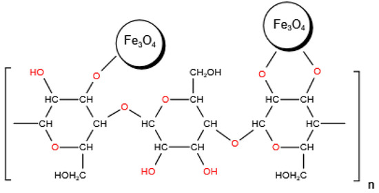 These changes in the chemical structure of the cellulose are compatible with the hypothesis that NPs bind to the cellulose molecules, preventing the degradation of NE and hindering the advance of the transesterification. In Figure 10, a schematic representation of the chemical interactions that are proposed to explain the interaction between NPs and cellulose molecules within the kraft paper is shown. According to this explanation, the FeO NPs may replace the hydrogen of the alcohol groups. These bonding mechanisms were obtained based on the results of the performed XPS tests.