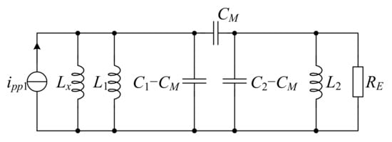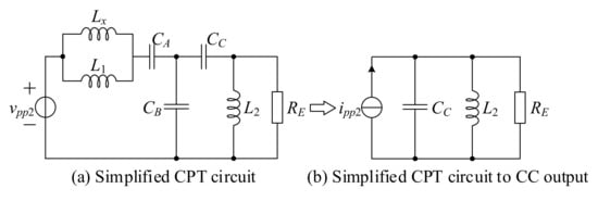 If Lx resonates with L1 and C1 − CM and L2 resonates with C2 − CM, the Lx-PP CPT circuit is converted to a load-independent current source as shown in Figure 11.