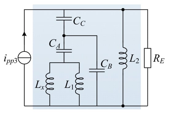If the impendence of the blue box in Figure 14 is infinite, the Lx-PS CPT circuit is converted to a current source ipp3. And the operating angular frequency ωcc2 should satisfy