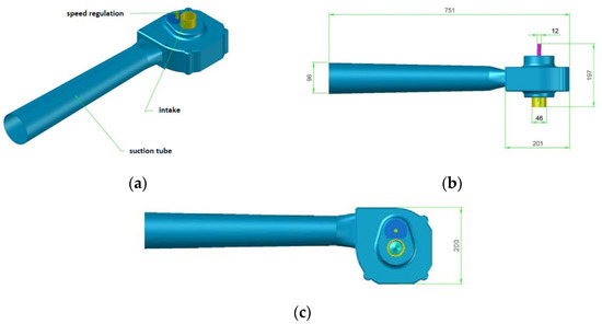 Turbine prototype: (a) description; (b,c) dimensions. Units: mm.