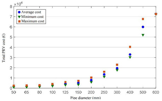 Total PRV cost depending on pipe diameter according to Garcia et al. (2019) [49].