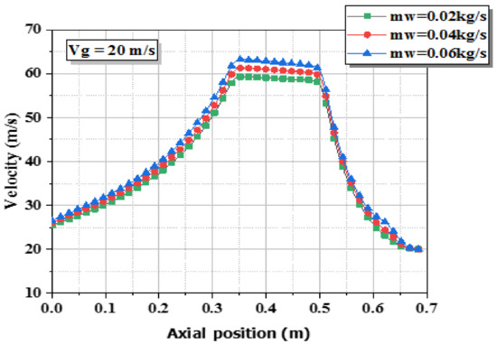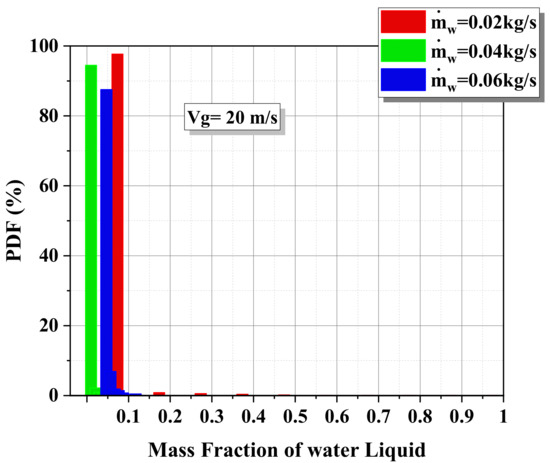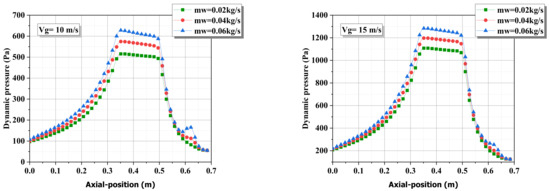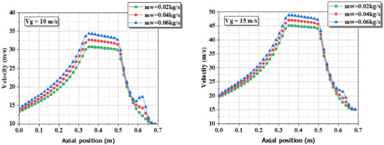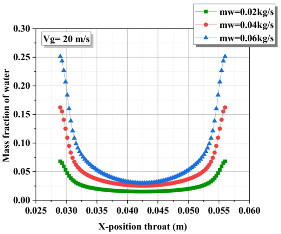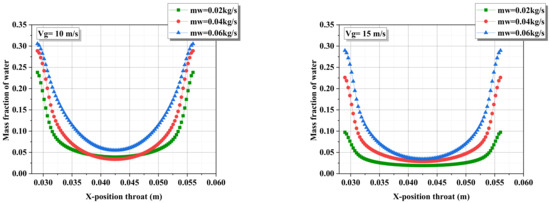 - The mass fraction of the water concentrates on the wall under the influence of the high velocity of the gas.