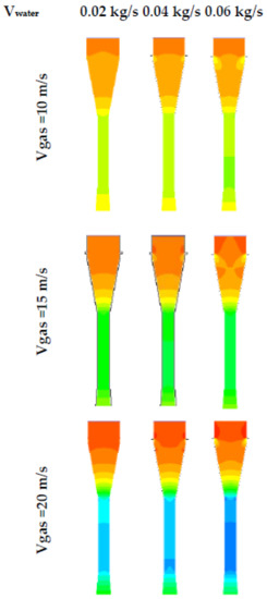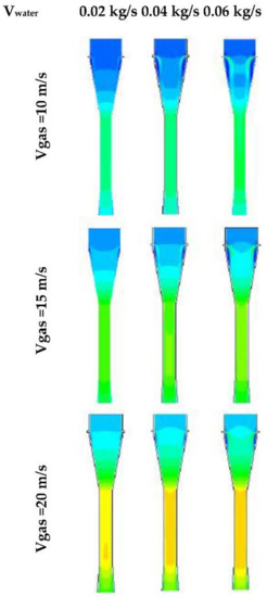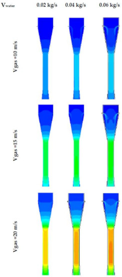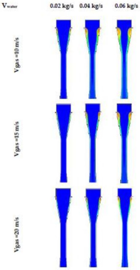 - Guerra, V.G.; Béttega, R.; Gonçalves, J.A.S.; Coury, J.R. Pressure drop and liquid distribution in a venturi scrubber: Experimental data and CFD simulation. Ind. Eng. Chem. Res. 2012, 51, 8049–8060. [Google Scholar] [CrossRef]