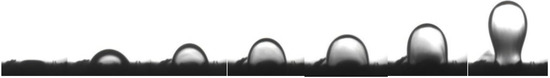 - The position between the sample and the camera was adjusted so that the shape of oil drop can be observed clearly. The camera was turned on and the process of oil drop growth and discharge from the surface was photographed and captured at regular intervals;