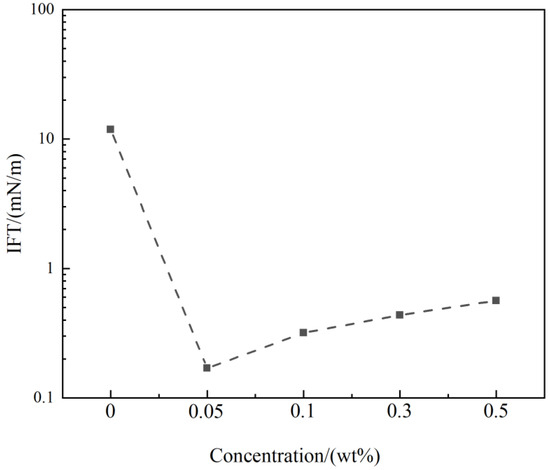 - Synthetic formation water was prepared, and surfactant solutions with different concentrations were prepared with synthetic formation water. The surfactant solutions were vacuumed to eliminate bubbles inside;