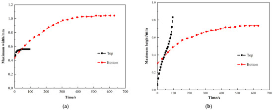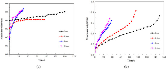Change of oil drop size in different discharge direction. (a) Comparison of maximum width of oil drop; (b) Comparison of maximum height of oil drop.