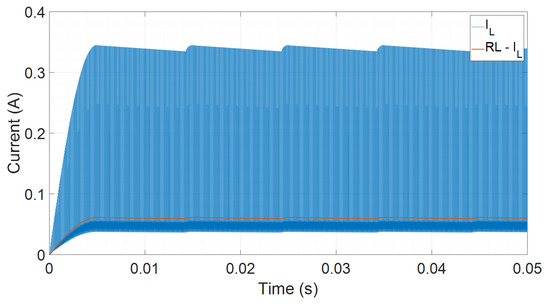 - is the current supplied to the simple SMPS load when the load is represented by a simple resistor.
