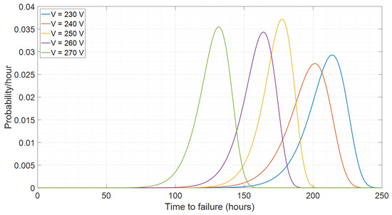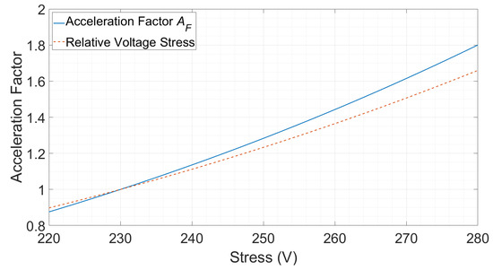 - Naiken, V.; Rathore, A. Accelerated temperature and voltage life tests on aluminium electrolytic capacitors: A DOE approach. Int. J. Qual. Reliab. Manag. 2015, 33, 120–139. [Google Scholar] [CrossRef]