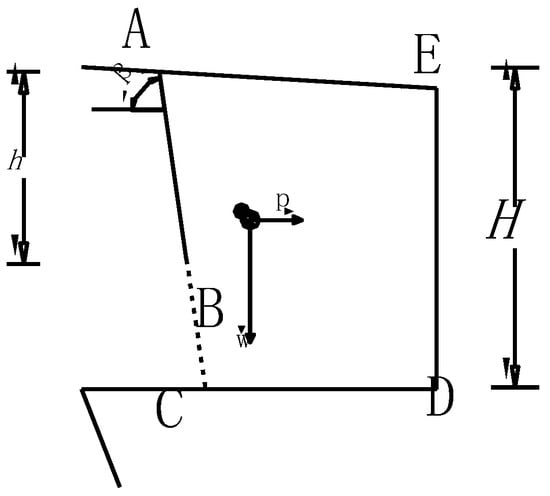 The stability calculation and support design of the perilous rock mass do not consider the seismic action []. The stability calculation of the perilous rock mass in the working area during an earthquake mainly adopts the following two working conditions, and considers the reduction in the shear strength index of the rock mass structural plane under rainstorm conditions: