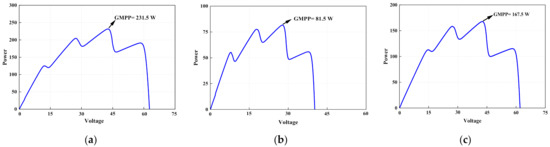 Here, ‘i’ is iteration number, and ‘’ is the distance between actual voltage and desired operating point voltage, while ‘’, ‘’, and ‘’ shows the coefficient vectors. is the maximum power point voltage at standard test conditions, and is the measured voltage value during non-uniform irradiance variation.