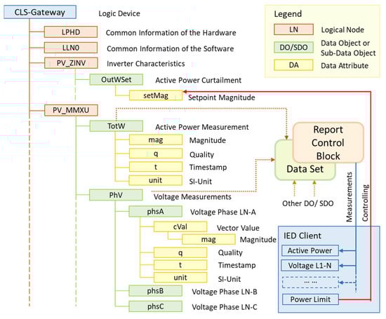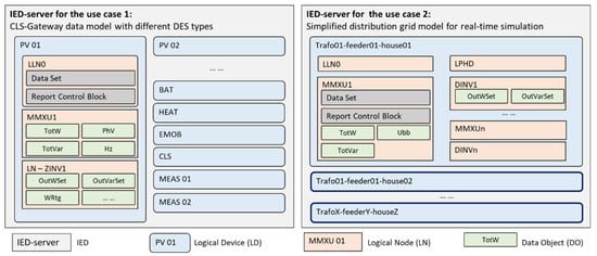 An example of the IEC 61850-compliant data model is presented in Figure 3. Even when one certain DES property is not yet included in the current IEC 61850 data model definition, it can be added to the data model as a customized parameter.