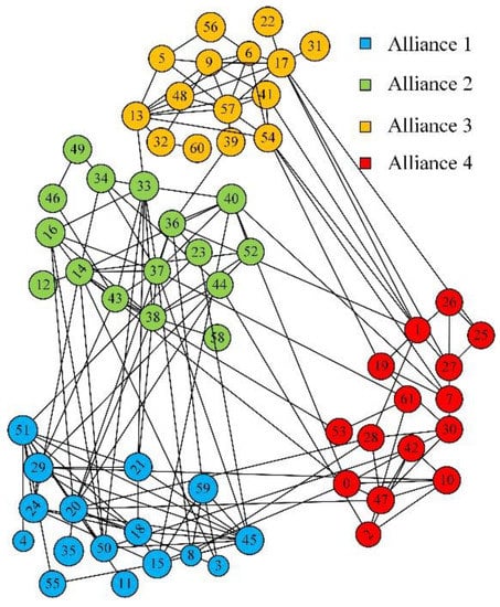 Using the characteristic model for community energy-consuming entities proposed in Section 3, the alliance result of energy-consuming entities is shown in Figure 6.