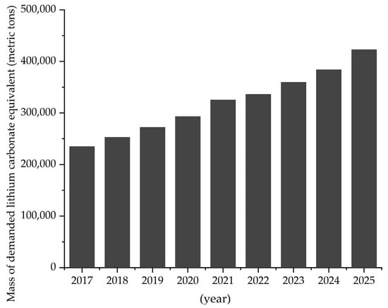 - Projection Total Lithium Demand Globally 2030|Statista. Available online: https://www.statista.com/statistics/452025/projected-total-demand-for-lithium-globally/ (accessed on 1 August 2020).